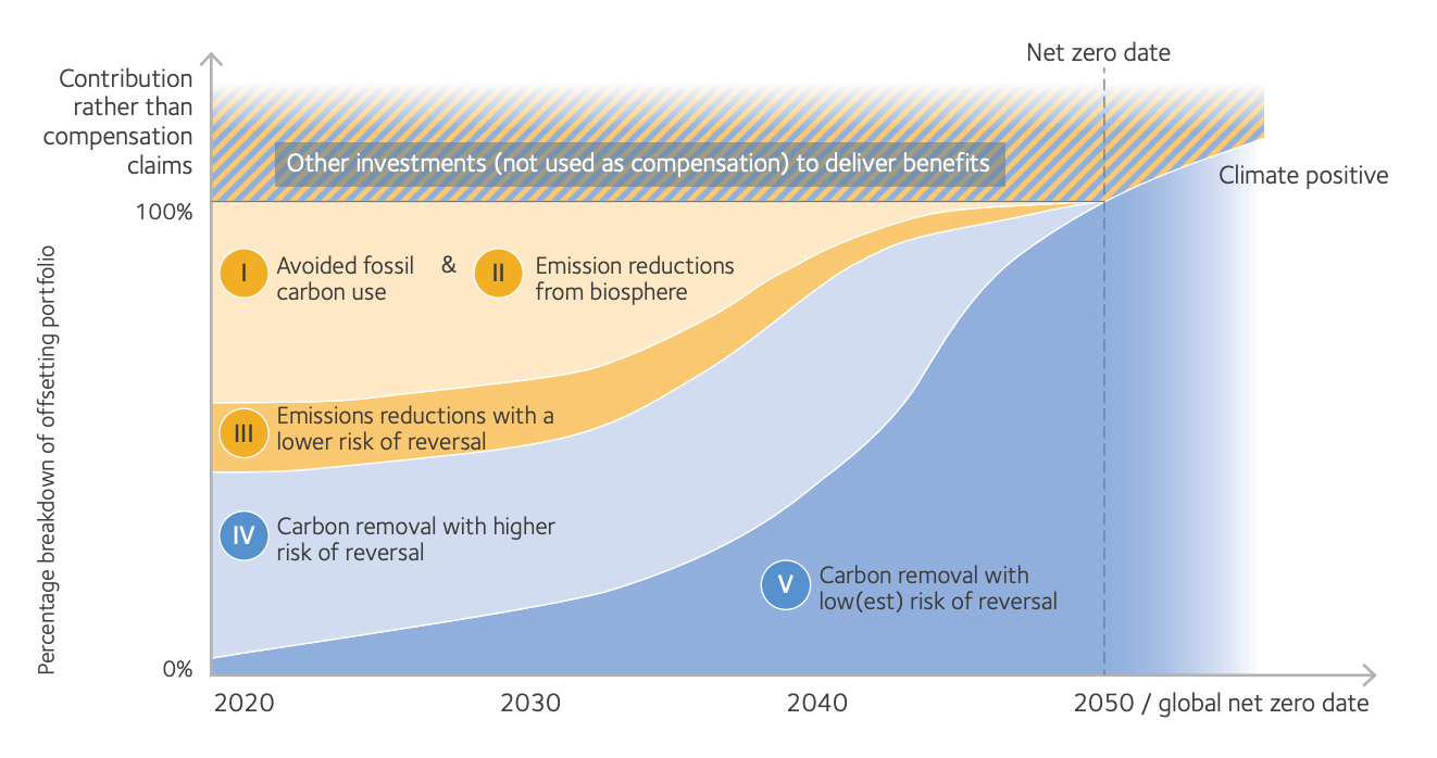 How the Oxford Principles outlines the use of both carbon reduction and removal credits as companies approach 2050. Source: The Oxford Principles for Net Zero Aligned Carbon Offsetting (revised 2024)