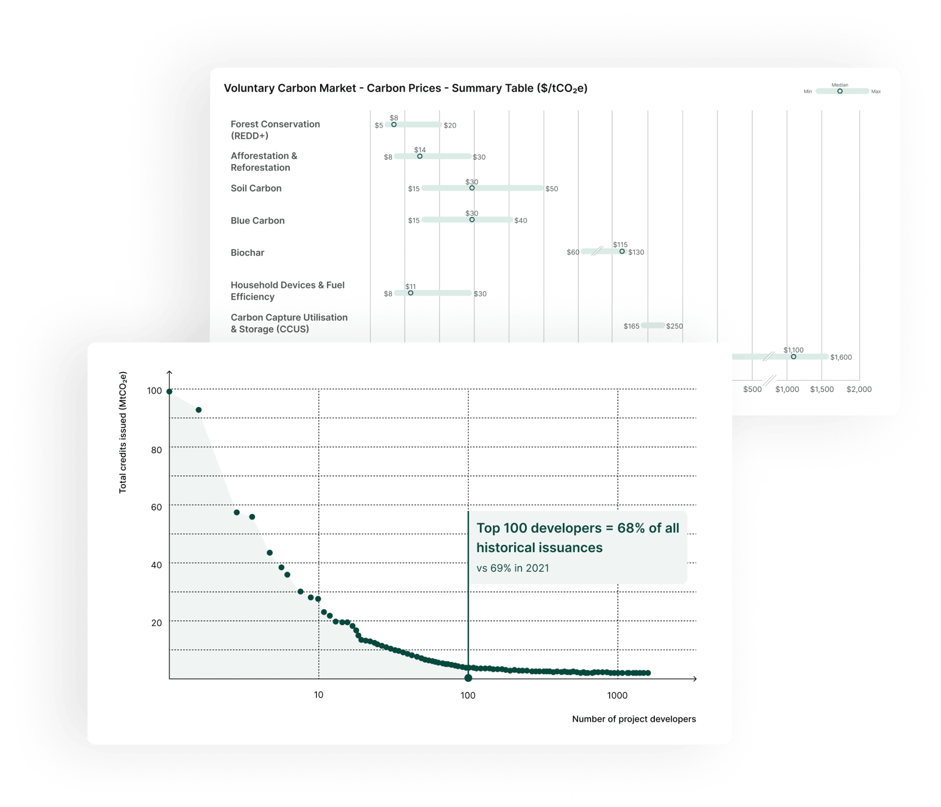 Stay ahead with benchmarking, price trends, and policy alerts drawn from our unparalleled access to both buyers and suppliers across the voluntary carbon market. Our expert team and AI-powered technology work hand-in-hand to create award-winning market intelligence.
