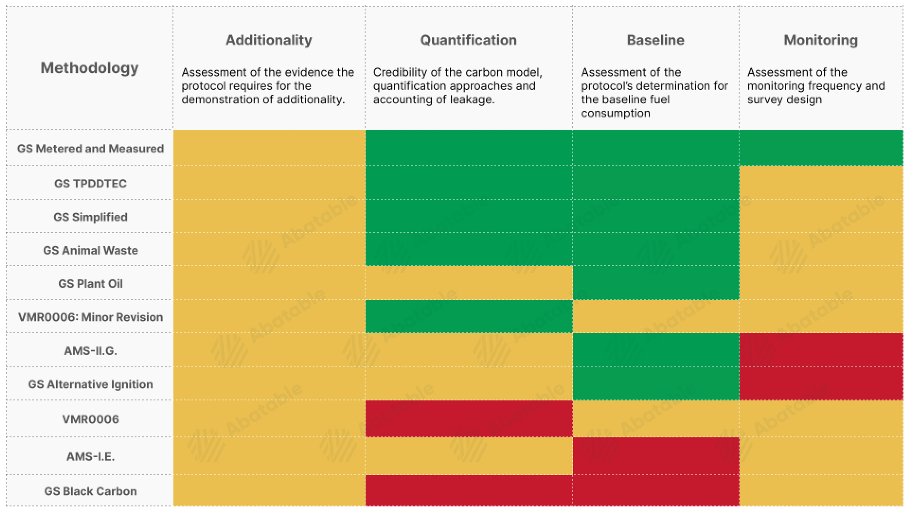 To identify the most stringent ICS methodologies, Abatable conducted a deep dive into eleven of the most popular and evaluated their performance against key project criteria including an assessment of additionality, quantification, baseline and monitoring. We have confirmed the results of our analysis with expert consultations.