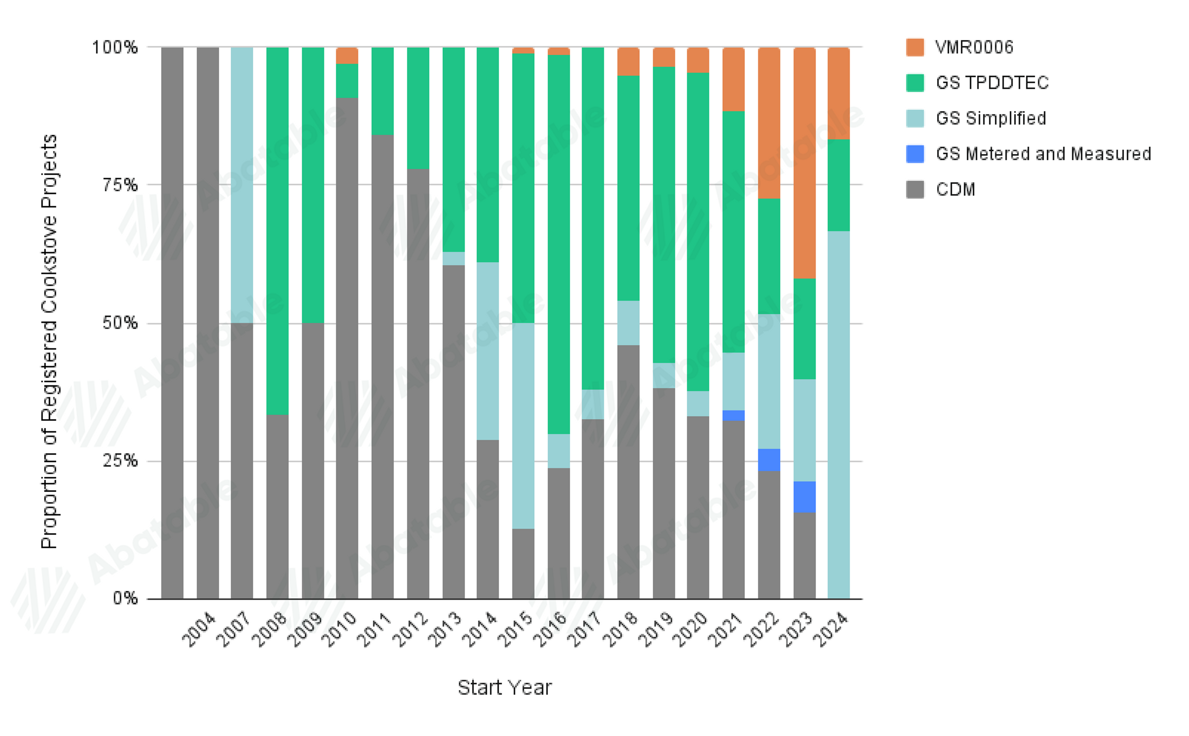 Recently, some projects have registered under the GS Metered and Measured methodology (1.31% of total cookstove projects to date), which has been predominantly aimed at electric stove project activities. With greater alignment of the metered approach to the latest Article 6.4 guidance, we expect an uptick in project registration under the GS Metered and Measured methodology.